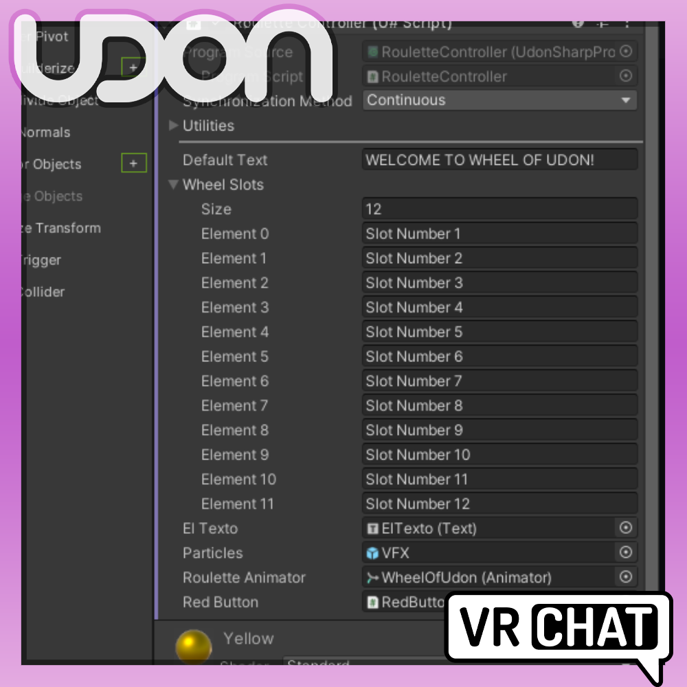 You can see the Wheel of Udon! in action here: https://vrchat.com/home/launch?worldId=wrld_2f71e124-8d73-4af9-a314-c5c199cc7d1c